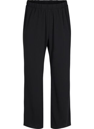 Simple trousers in a solid-coloured design with regular fit around the thighs and extra width from the knee down. The trousers have an elasticated waist for better comfort and pockets on the side.