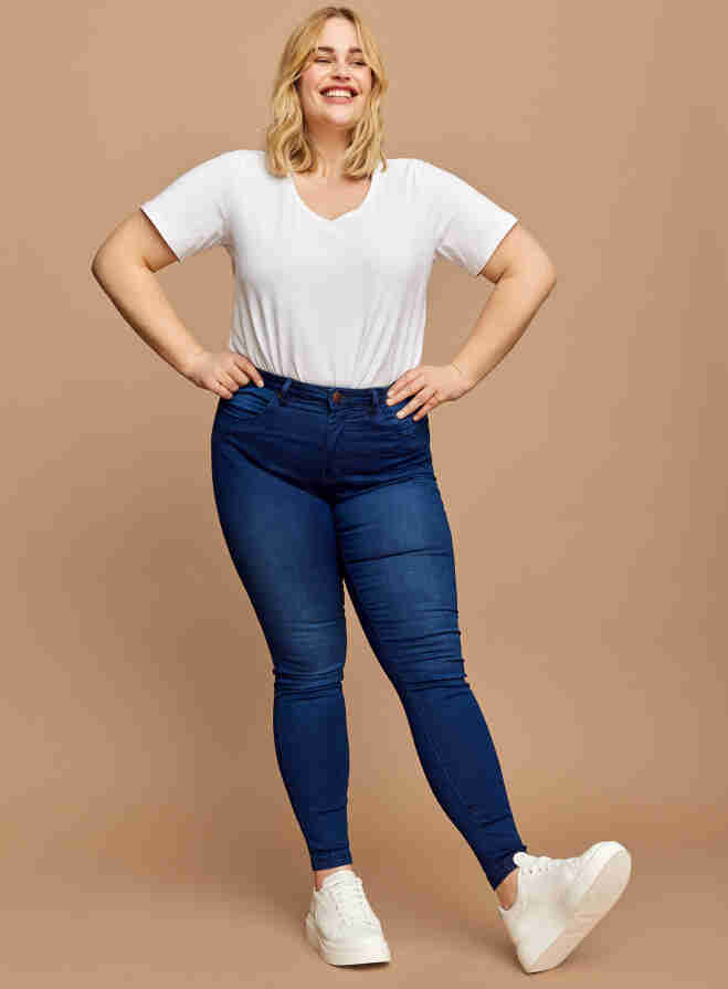 At Zizzi, we are aware that fit is paramount when it comes to jeans. That’s why we have created this jeans size guide for women with curves. Here we describe our jeans models and their sizes so that you can more easily find your right size and fit.