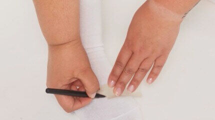 Stand with your heel against the wall, put your weight on the foot you're measuring, and place a book in front of your longest toe. Measure the distance from the wall to the book. Do this for both feet and use a shoe size guide to find your correct shoe size.