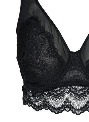 Feminine bra in a gorgeous lace fabric with mesh details. The bra has an underwire and small double shoulder straps that can easily be adjusted.
