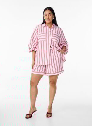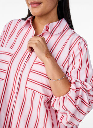 Loose shirt with a beautiful striped pattern in a lightweight, smooth fabric that feels comfortable against the skin. The shirt features a classic collar, full button closure, chest pockets, and long sleeves with elasticated cuffs.