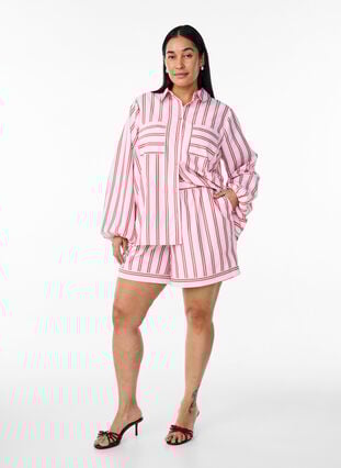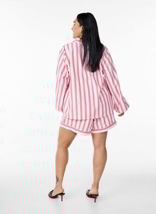 Loose fit shorts with side pockets and a high waist with elastic waistband. The shorts have a beautiful striped pattern and are made from a lightweight and smooth material that feels comfortable against the skin.
