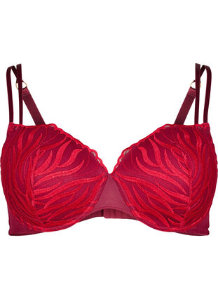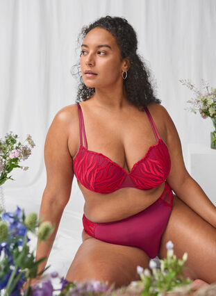 Underwire bra with wide side support for optimal comfort and moulded cups that cover most of the breast, giving the bust extra support and a nice round shape. The bra is designed with beautiful embroidery detail on the entire cup and adjustable straps with two narrow straps at the front and a wider single strap at the back.