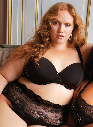 Moulded bra with a smooth finish and a stylish rhinestone detail on the underwire. The moulded cups shape the bust and create a natural, rounded silhouette, while providing good support and lift. The bra has extra wide, adjustable straps and a high side for maximum support and comfort.