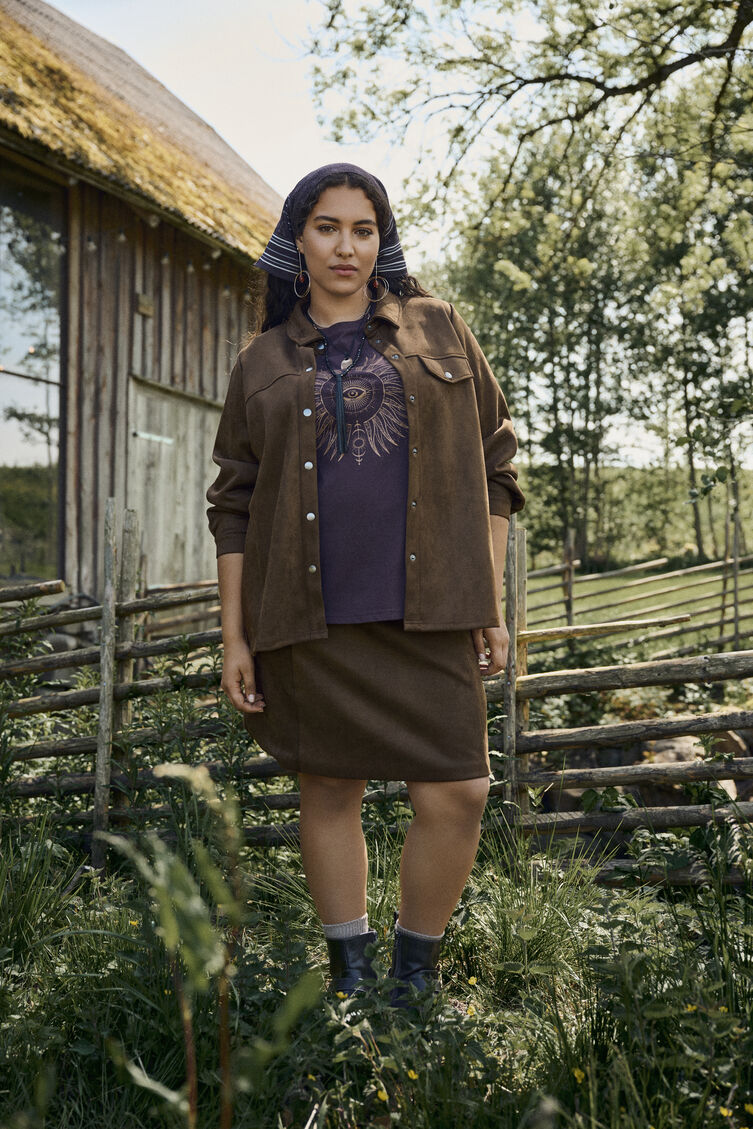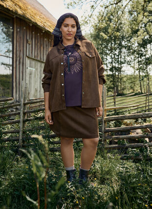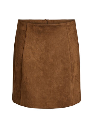 Short faux suede skirt with a comfy, stretchy finish. The skirt has a slightly A-line shape and a hidden zip closure at the back, plus a soft lining.