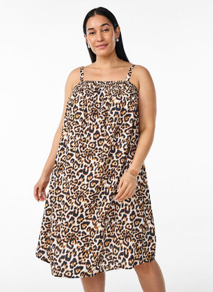 Short dress with narrow, adjustable straps, a wide smocked panel above the bust and a comfortable fit. This dress contains 85 % LENZING™ ECOVERO™ Viscose fibers, which support natural softness and drape.
