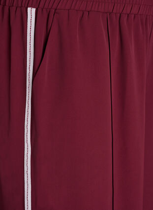 Sporty trousers in a lightweight and stretchy material with a high waist and straight legs. The trousers have a relaxed fit with an elastic waistband, side pockets, and decorative stripes along the legs for a sporty look.