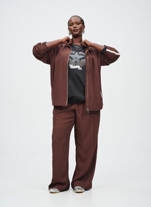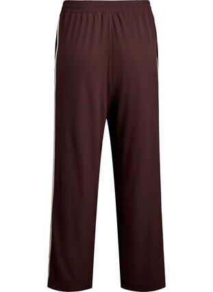 Sporty trousers in a lightweight and stretchy material with a high waist and straight legs. The trousers have a relaxed fit with an elastic waistband, side pockets, and decorative stripes along the legs for a sporty look.