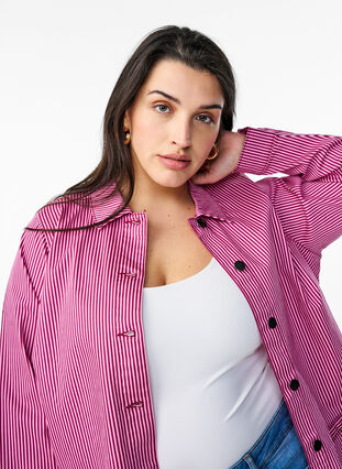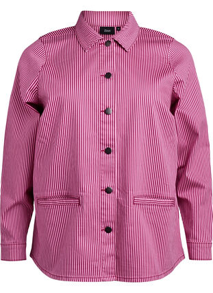 Shirt with a timeless striped design and a regular fit. The shirt is made from a comfortable cotton-blend fabric and features a classic collar, front pockets, front button closure, and long sleeves with cuffs.