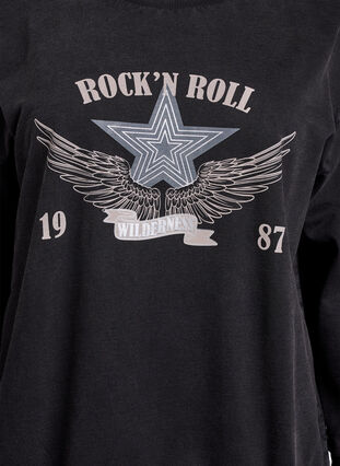 Sweatshirt with a cool rock’n’roll print on the front and a relaxed, comfortable fit. The style features a round neckline, long sleeves, and ribbed cuffs at the sleeves and hem. The sweatshirt is made from 100% organic cotton with a washed look, which provides a slightly faded colour and an authentic vintage vibe.