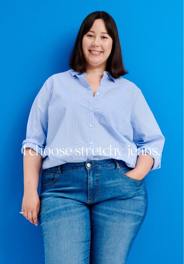 It's always the perfect season for plus size jeans and denim! Explore our new range and find the pair you'll love to wear every day. Plus size jeans are an absolute must-have, no matter the season. You deserve the best – jeans that are both comfortable and on-trend. Discover everything from loose-fit styles to skinny jeans, high-waisted designs, and wide-leg options. Our selection of plus size jeans for women allows you to find exactly the pair that suits your body and style. Check out our wide range of fits, colours, washes, and waist heights here. We offer jeans in sizes S (size 42) to size 3XL (size 64), as well as plus size jeans with extra length.