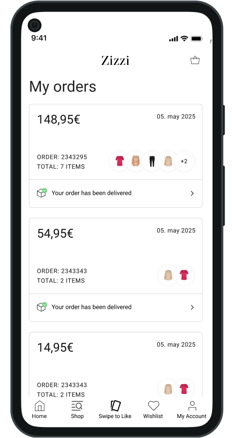 Easily save the latest fashion trends with a simple swipe. Build your wishlist effortlessly, ensuring your favorite pieces are always at your fingertips.