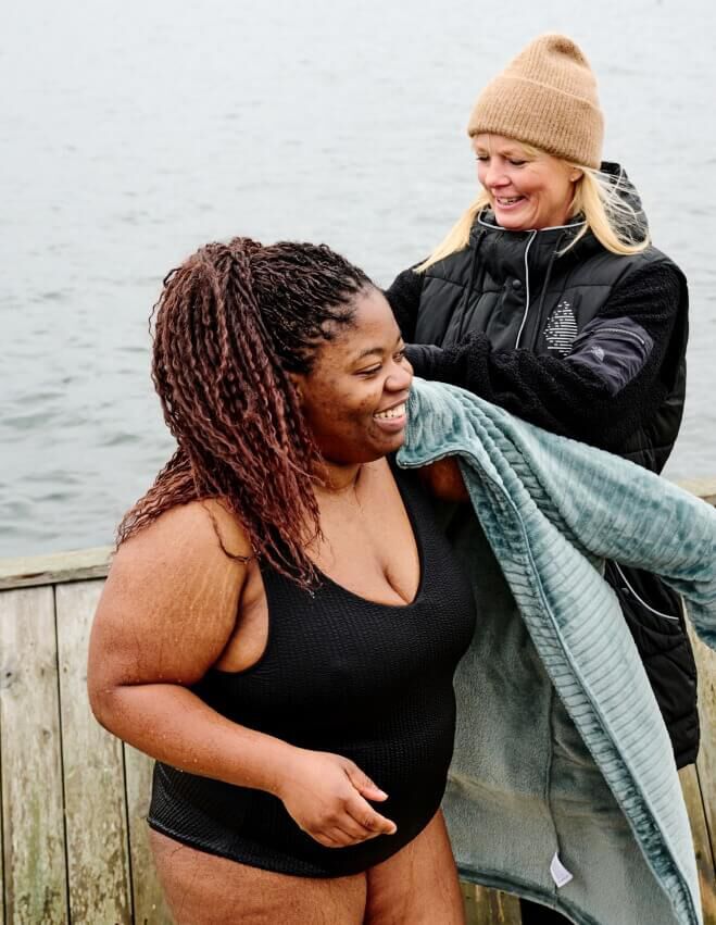 Nowadays, we often have to be in many places at once and always have our phones with us. When you are winter swimming, you need to be present in the moment, and being in nature and experiencing it can feel like a kind of medicine. All senses are awake, which gives a nice sense of calm and presence. It puts the word health in a whole new perspective, says Pia Fosnæs, personal trainer.